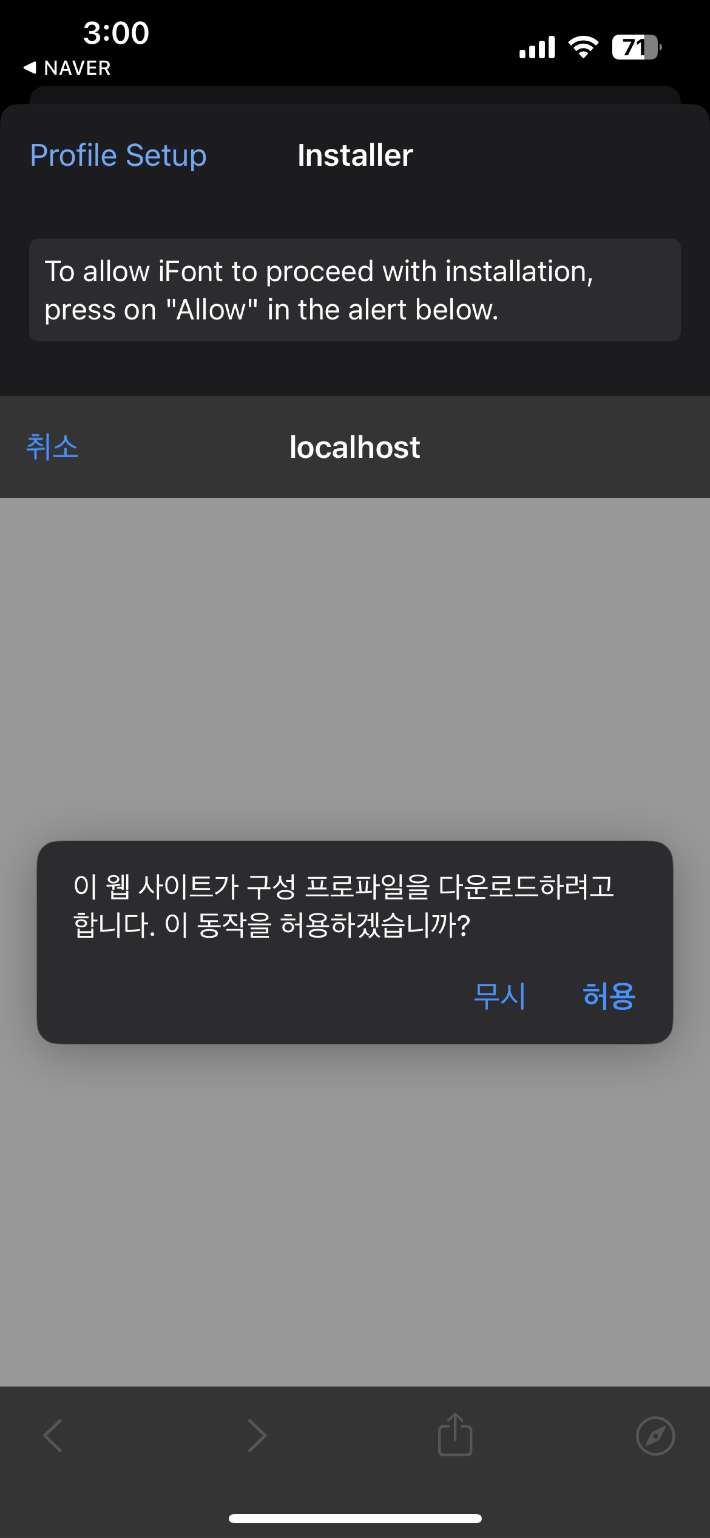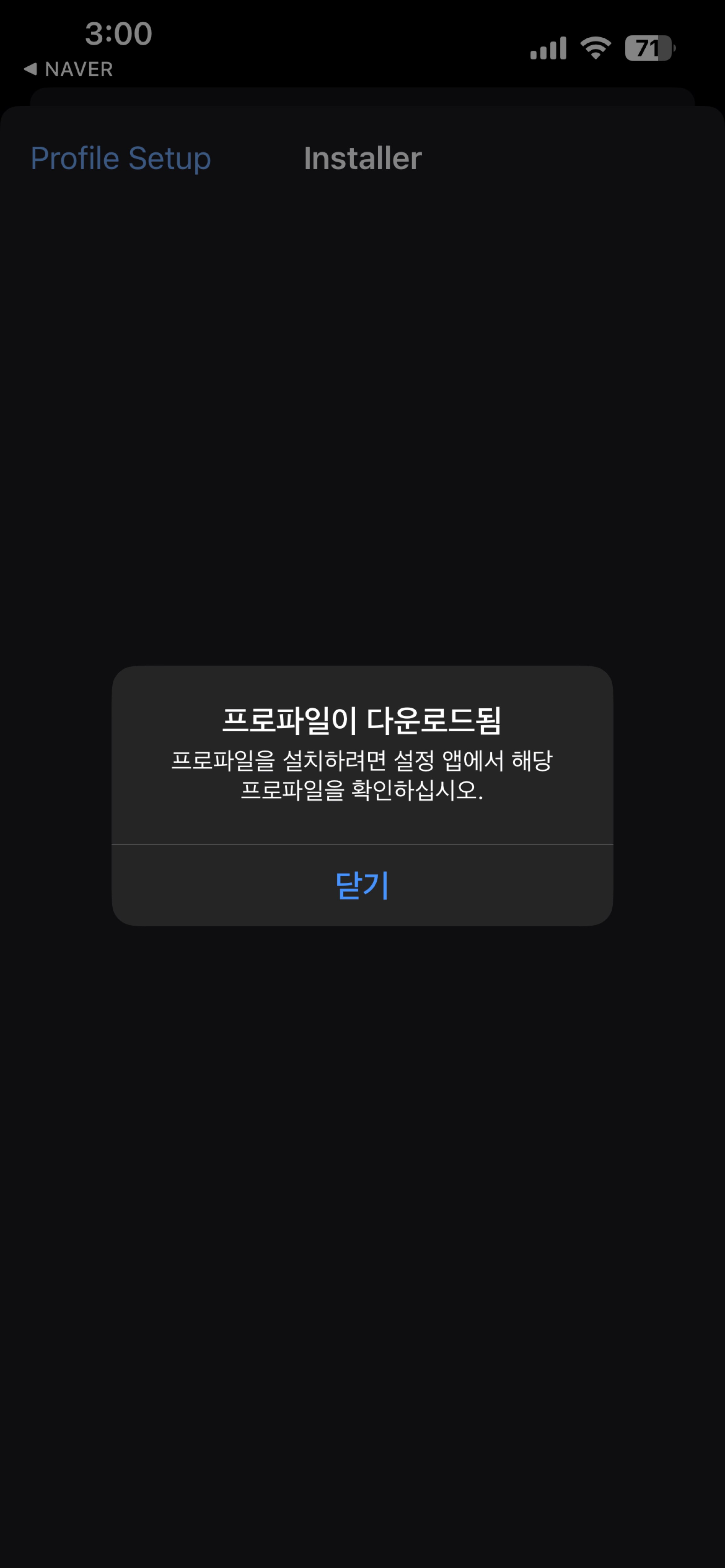 7. 설정 앱에서 해당 프로파일을 확인하라고 뜨면 아래 닫기를 눌러주고, 설정에 들어가 봅시다.
