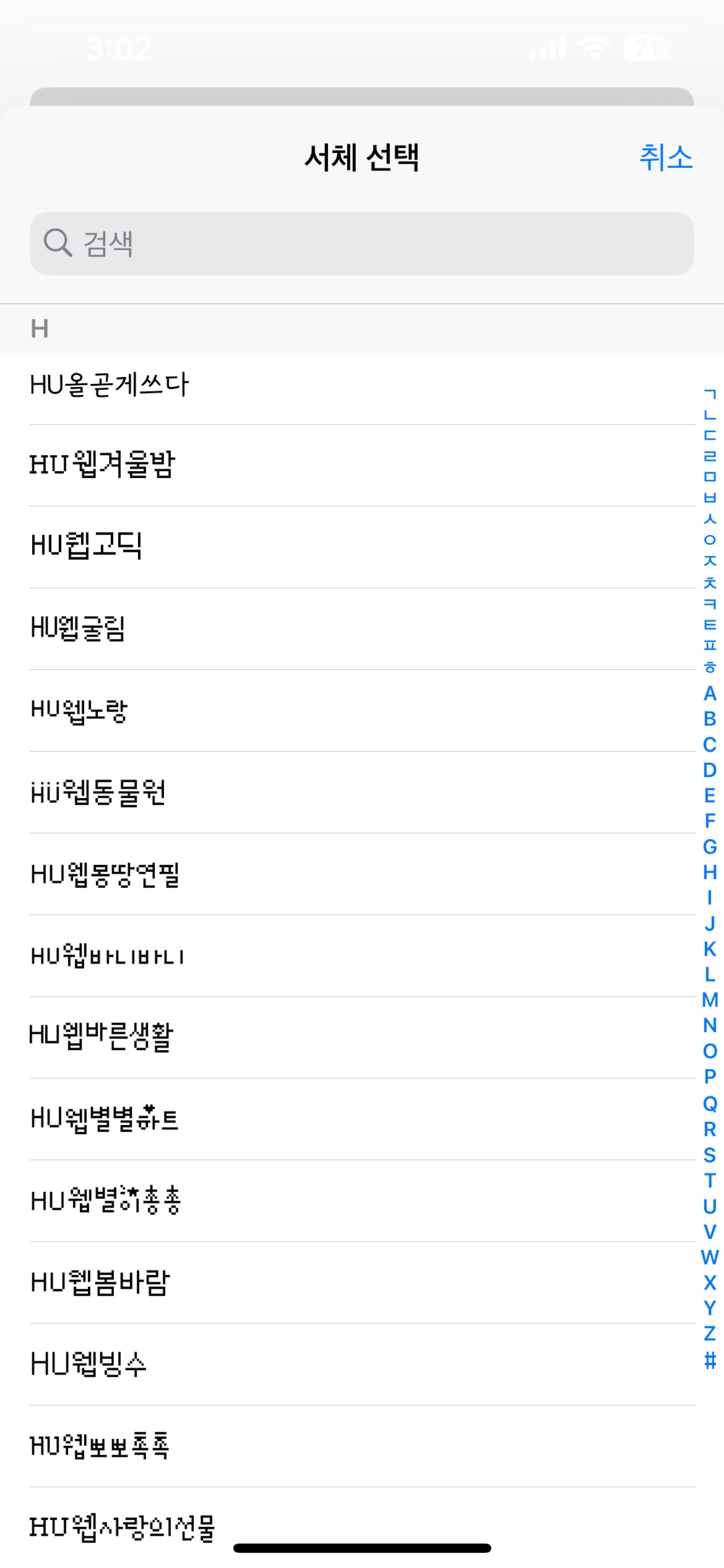 다양한 HU폰트 179종을 아래 홈페이지에 만나볼 수 있습니다 :)